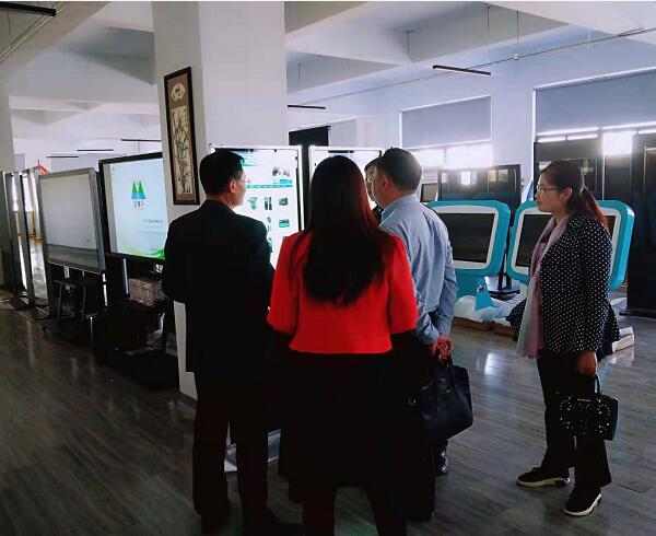 總經理陳總在給領導介紹公司給行業(yè)單位定制的一些互動觸摸查詢軟件