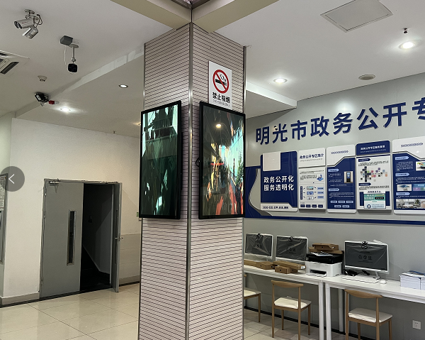 迅博明一批觸摸查詢機、壁掛廣告機和液晶拼接屏應用于明光市政務中心和張八嶺鎮(zhèn)政府